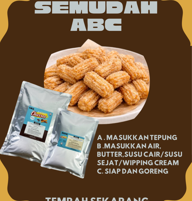 Dengan tepung ini, churros yang dihasilkan rangup di luar dan lembut di dalam. Sangat sesuai untuk kegunaan di rumah mahupun untuk peniaga yang nak jimat masa dan tenaga. Proses jadi lebih cepat, kemas, dan hasil tetap cantik.